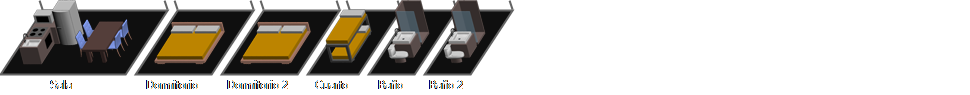 Sala - Cocina - Mesa de comedor Dormitorio (2 Personas) - Cama doble Dormitorio 2 (2 Personas) - Cama doble Cuarto (2 Personas) - Camas literas Baño - Baño con ducha Baño 2 - Baño con ducha