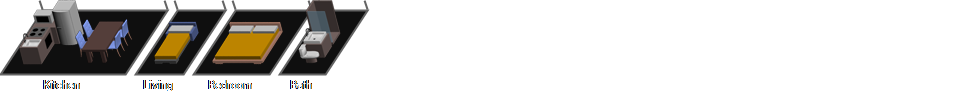 Kitchen - Kitchen - Dining table Living (1 Person) - Sofabed single Bedroom (2 Persons) - Bed double Bath - Bath with shower