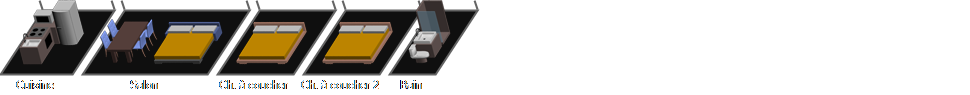 Cuisine - Cuisine Salon (2 Personnes) - Table à manger - Sofa-lit double Chambre à coucher (2 Personnes) - Lit double Chambre à coucher 2 (2 Personnes) - Lit double Bain - Bain avec douche