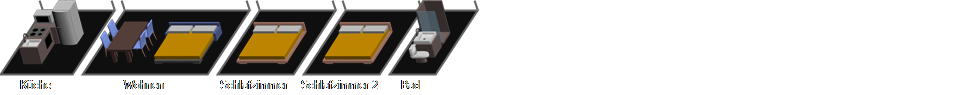 Küche - Küche Wohnen (2 Pers.) - Esstisch - Doppel-Sofabett Schlafzimmer (2 Pers.) - Doppel-Bett Schlafzimmer 2 (2 Pers.) - Doppel-Bett Badezimmer - Bad mit Dusche